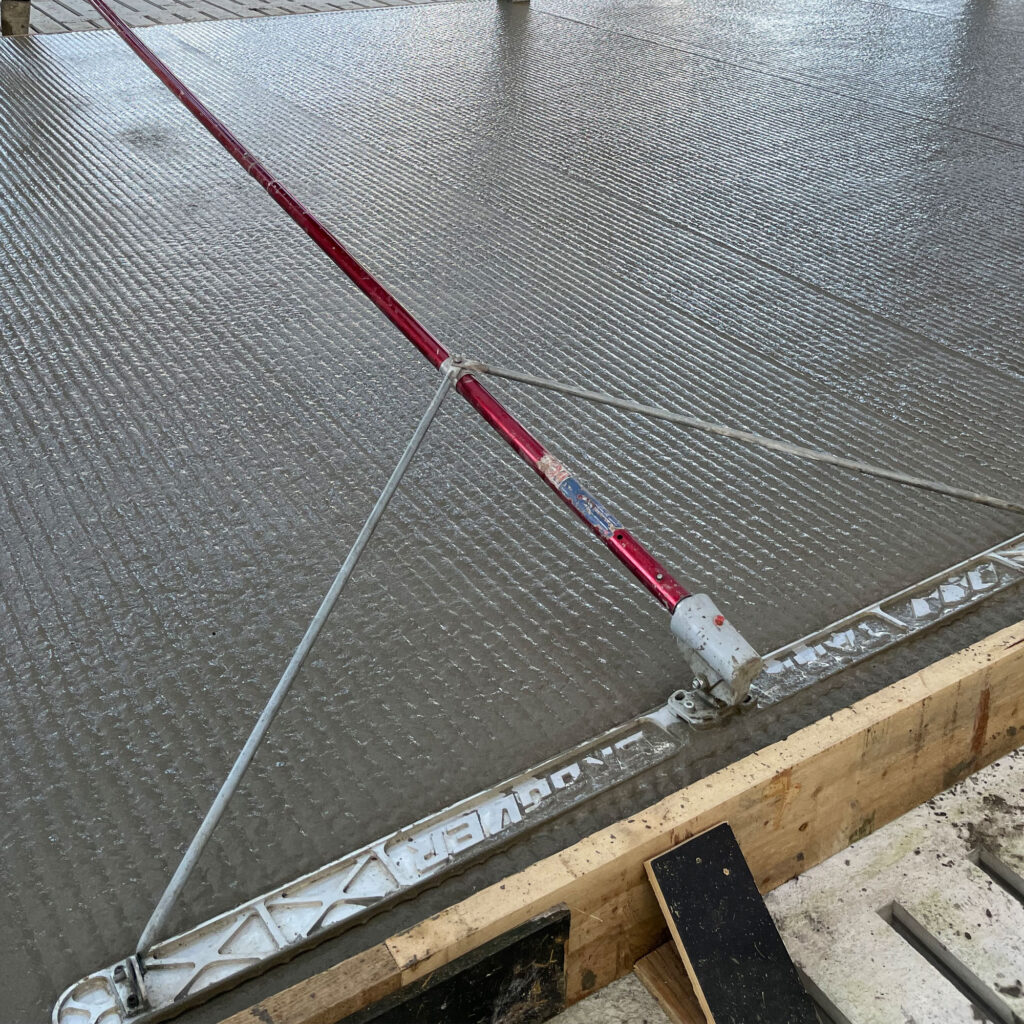 Timing is critical when grooving concrete. The Tamp Groover™ should be used once the slab has been levelled, the surface water has evaporated, and the concrete is firm but still workable. If applied too early, the grooves may collapse and lose definition. If applied too late, the surface can tear and produce an inconsistent finish. The ideal window is during final finishing, when the concrete can hold a defined rib without slumping.